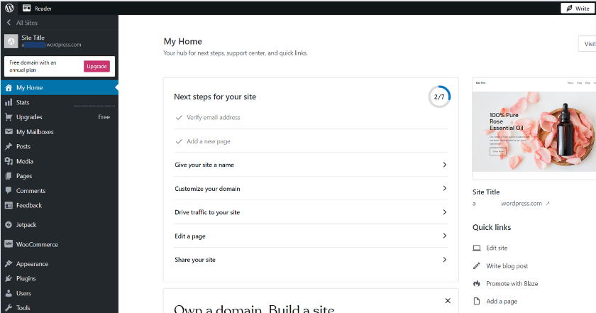 The Dashboard is the command center of your WordPress site. Here, you’ll find everything you need to manage your content, from posts and pages to comments and settings. Take a moment to explore these options. Hover over each section to see sub-options and get familiar with the layout.